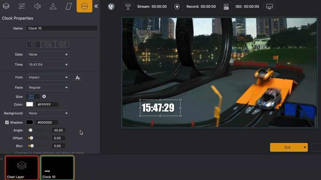 Add and format clocks and timers in Wirecast.