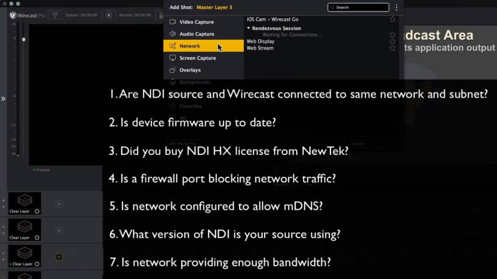 A few troubleshooting tips to try in order to get your NDI source to appear in Wirecast.
